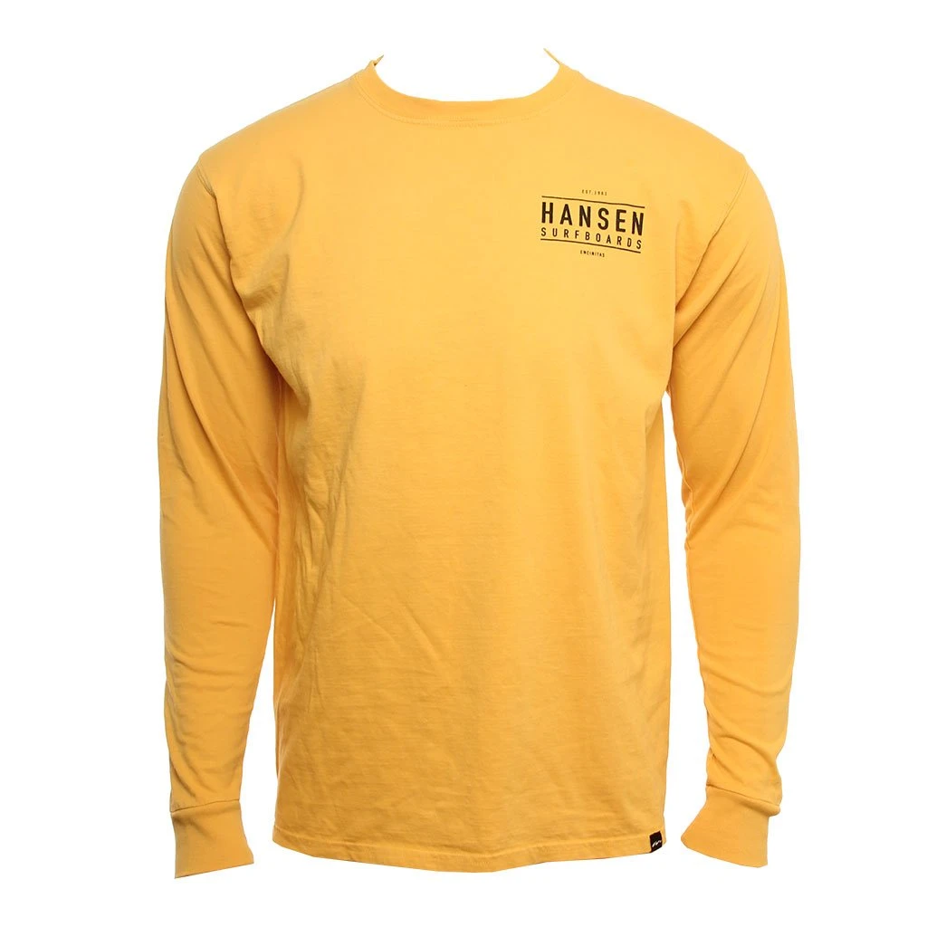This Hansen long sleeve tee features a stressed screen print of our “box corp” logo, small on the left chest and large on the back. 100% cotton / Mens Shirt Box Corp Ls in Golden Goose ( Goo) / Small / 100% Cotton / Hansen