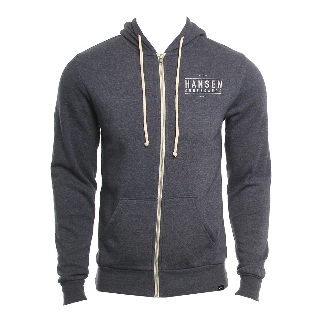Zip up Sweatshirt Small screen printed logo on left chest Large screen printed logo on back52% cotton / 48% polyester / Mens Sweatshirt Box Corp Zip in Denim / Small / Cotton/ Polyester / Hansen