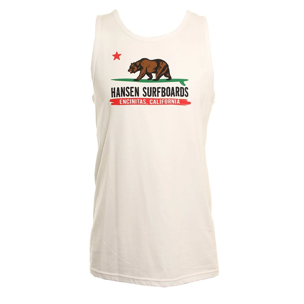 The Cal Flag is a Regular Fit tank top with a Front Screenprinted Logo design and is Made from a Cotton/ Polyester blend. / Mens Tank Top Cal Flag in White / Medium / Cotton/ Polyester / Hansen