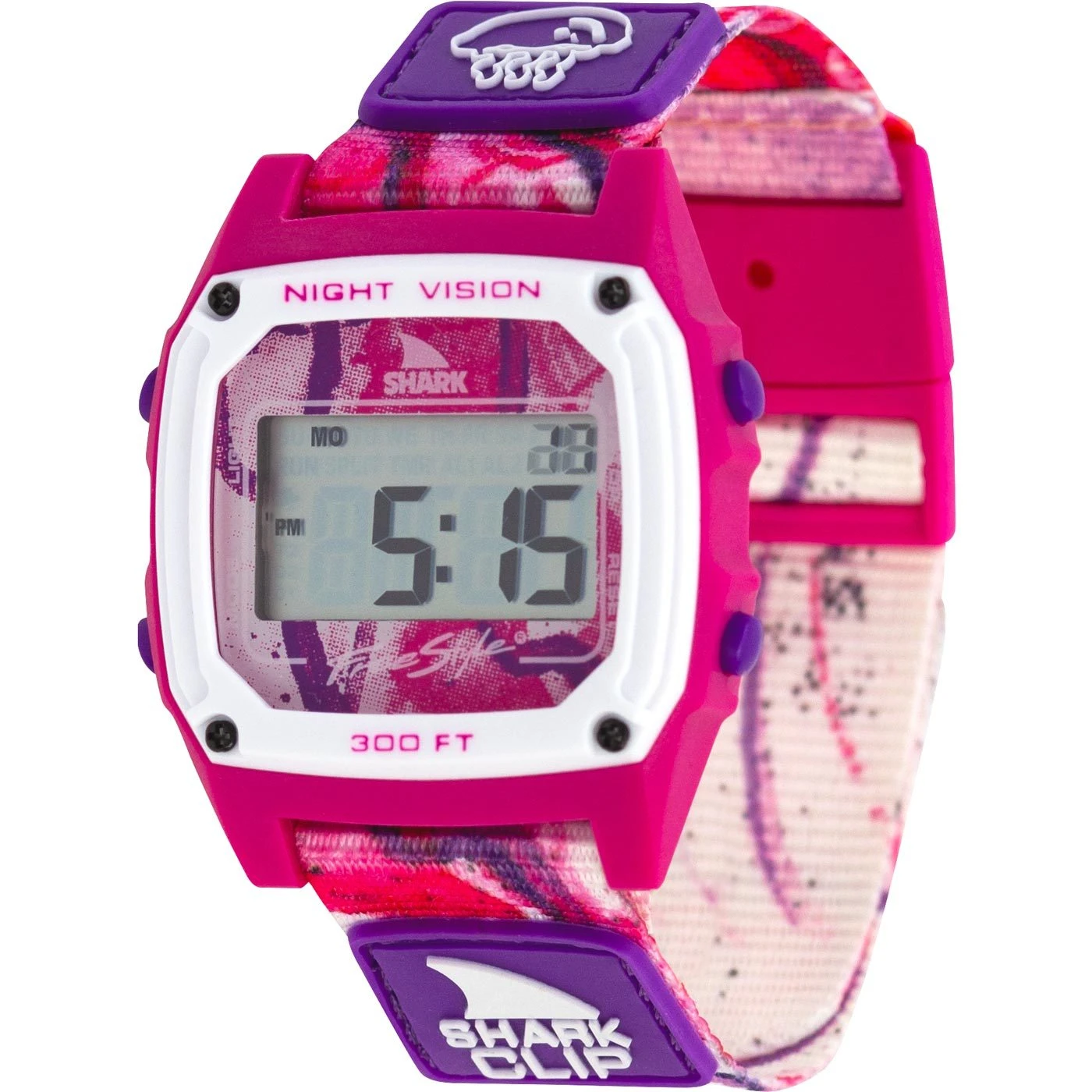 Retro-futurism at its finest! The Shark Clip features the original clip band system that ignited the Freestyle brand. Much like a seatbelt, just clip in to keep your watch safe, snug and comfortable. Like all Shark Watches, the Shark Clip is backed by our limited lifetime warranty. Fs101053 / Watch Shark Clip Jellyfish in Multi / Freestyle