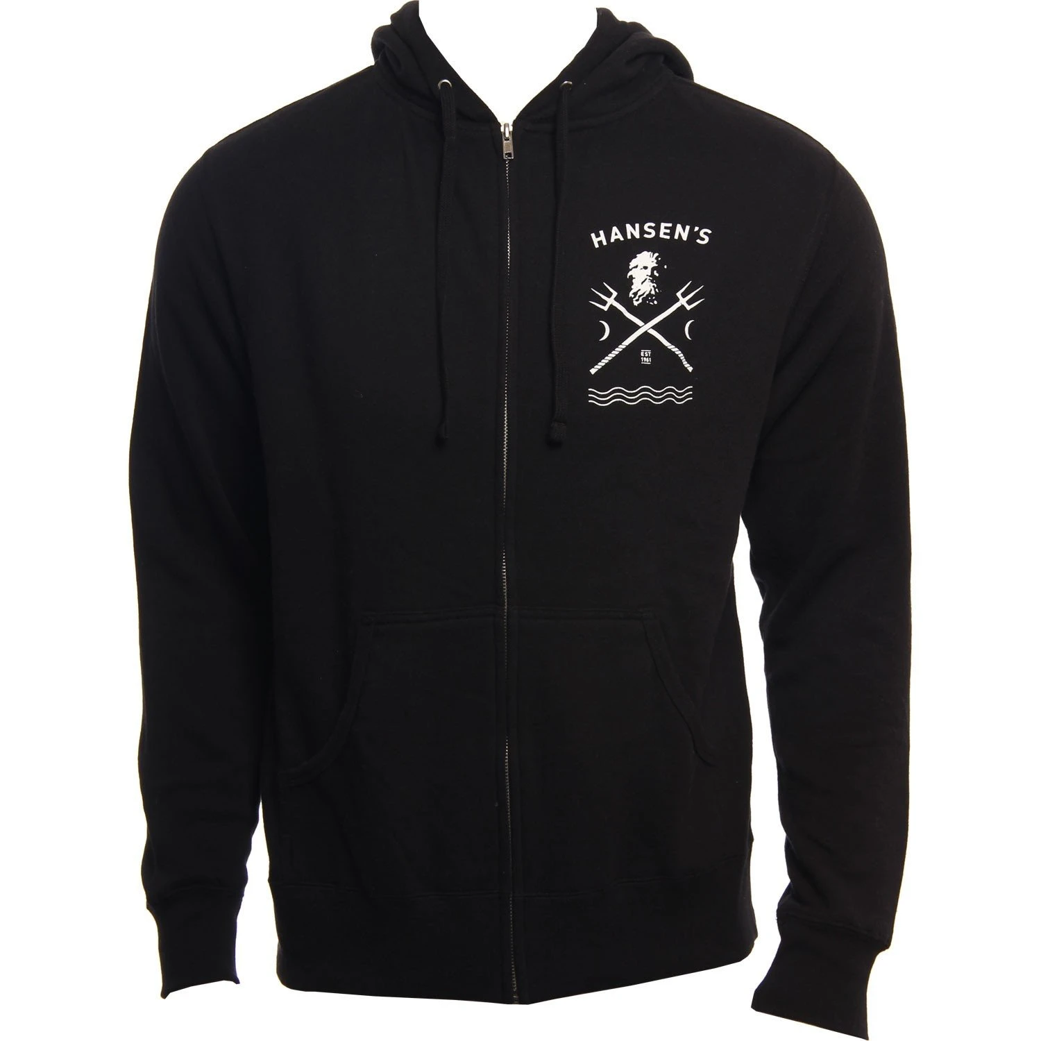 The Neptune Stylemaster is a Regular Fit Front Zip hoodie with a Kanga Pocket and Screenprinted design and is Made from a Cotton/ Polyester blend / Mens Sweatshirt Hooded Neptune Stylemaster in Black / Small / Cotton/ Polyester / Hansen