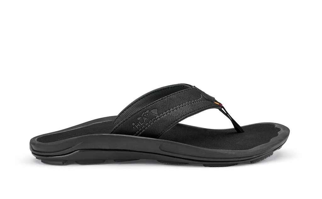 Hawai’i lifeguards log an incredible amount of beach time, both in and out of the water. They understand the importance of seamlessly moving between ocean and land without missing a step. Tested and approved by the Hawaiian Lifeguard Association, the Kīpī sandal transitions between water and land as nimbly as these lifeguards do. F E A T U R E S Water-ready build tested and approved by the H L A, features decorative strap stitching welded hook logo, laser footbed Detail , and a custom jacquard webbing tag, which represents the traditional colors of the H L A. U P P E R Water-resistant synthetic straps with quick-drying jersey knit lining and a soft comfortable nylon toe post. F O O T B E D Compression molded Eva midsole with brushed dropin Iceva footbed provides anatomical fit for sustained comfort. O U T S O L E Non-marking Wet Grip Rubber outsole lugged and siped for added traction on land and wet surfaces. / Mens Sandals Kipi in Black / 8 / Nylon / Olukai
