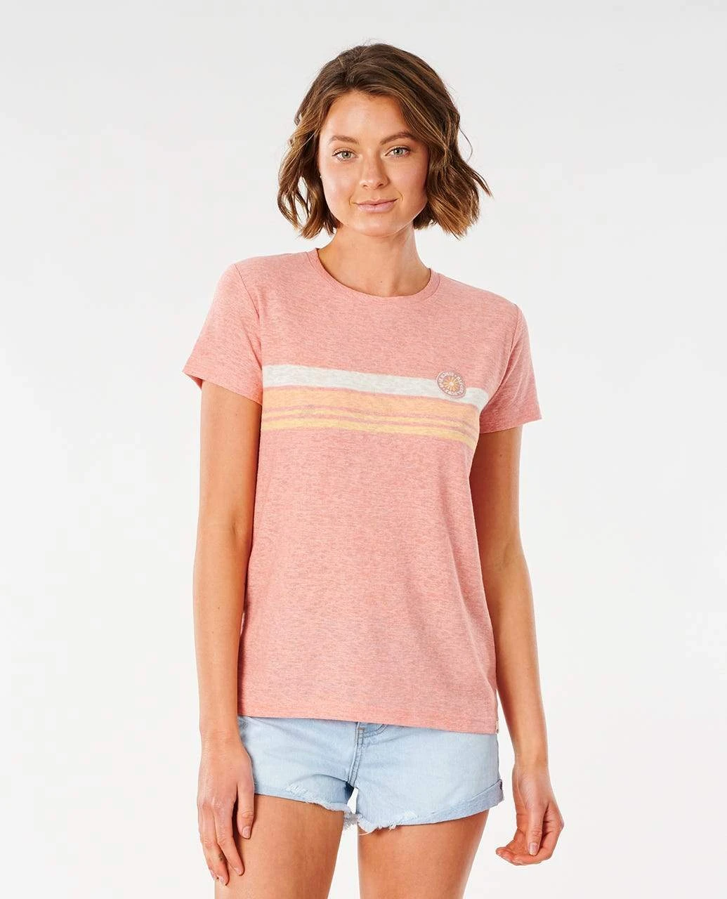 The Blossom Stripe Tee is a fun blend of pastels and stripey patterns. The tee has a textured jersey look and feel with a branded chest patch detail. Standard fit Textured slub jersey Yarn dye stripe Chest patch Branded trims Cotton/ Poly Slub Jersey / Womens Shirt Blossom Stripe in Clay (0136) / X- Small / Cotton / Rip Curl
