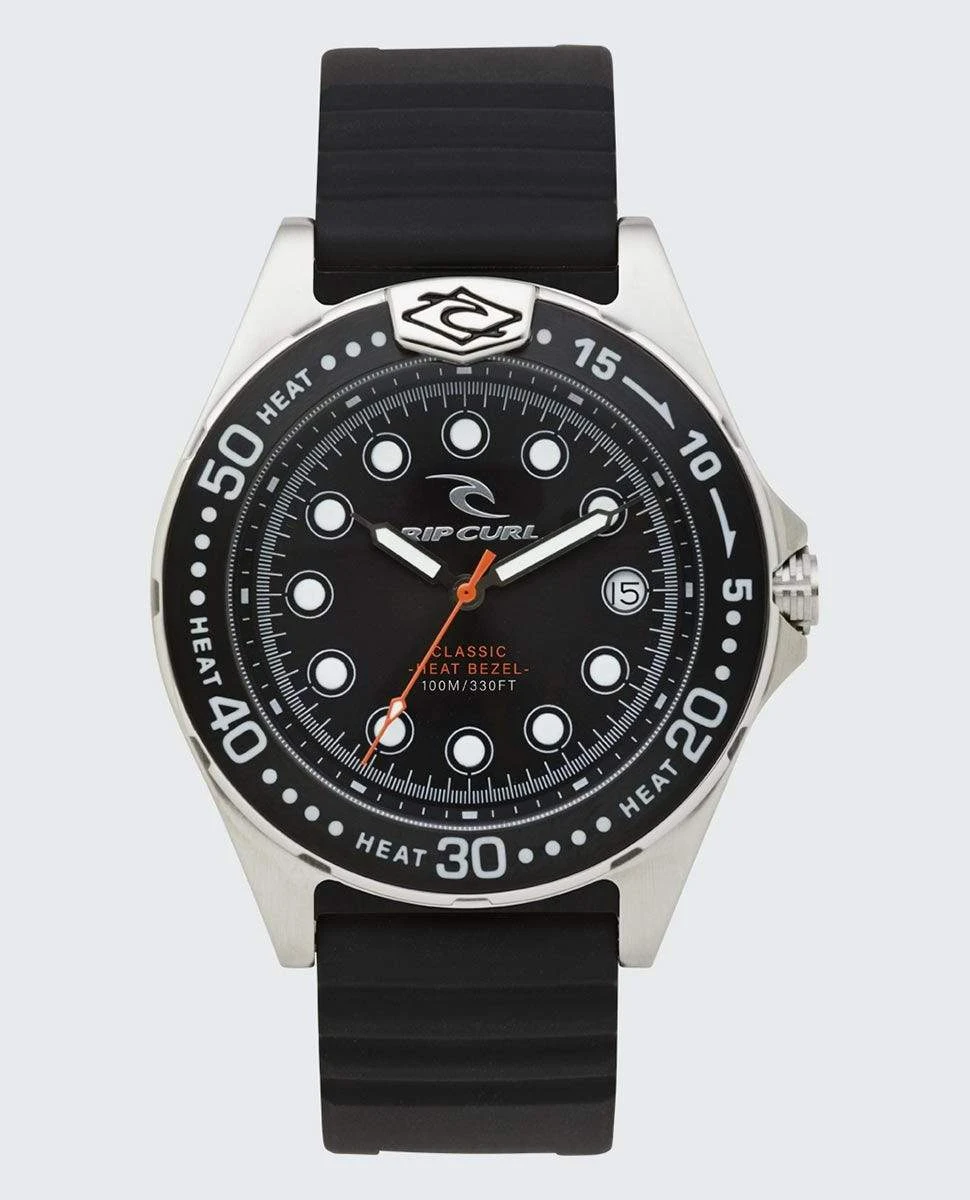 Rip Curl began making watches in 1989 with a clear aim — to produce quality timepieces for surfers with useful surf related functions, like bezels to time contest heats. They are the only Surf Watches with the Heat Bezel Timer, built by surfers for surfers and are tube tested by world champions. This modern Classic Heat Bezel Surf Watch with Pu band will only get better with time, designed to be as relevant now as it was then, authentically Rip Curl. / Watch Classic Heat Bezel in Black / Rip Curl
