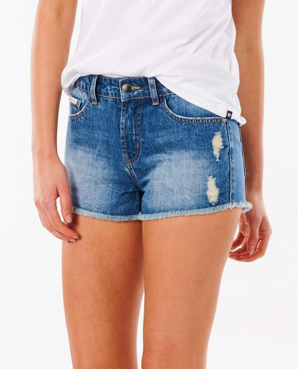 Denim shorts are a summer wardrobe staple. The Val Denim Walkshort has a worn, edgy look with a frayed hem and mini length. Cotton denim 100% Standard fit Mini length Frayed hem Metal rivets Woven labels Model Wears Model is 176 cm (5’8) and wearing a size 24. Style Code Gwaci9 / Womens Shorts Val Denim Walkshort in Blue / 24 / Cotton / Rip Curl