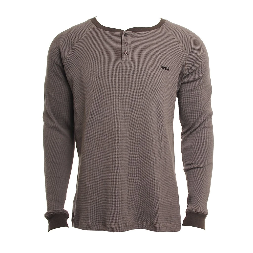 A first layer with a top-notch feel, the Rvca Moorside Thermal Henley Shirt upgrades the essential with a custom two-tone waffle knit. The premium long sleeve thermal keeps it classic with a Henley neckline and raglan sleeves, adding on Rvca embroidery at the left chest. Mens thermal shirt Two-toned waffle knit3-button henley neck Raglan sleeves Ribbing at cuffs and neck R V C A logo embroidery at chest Slim fit100% cotton / Mens Shirt Moonside Thermal Henley in Black / Medium / 100% Cotton / Rvca