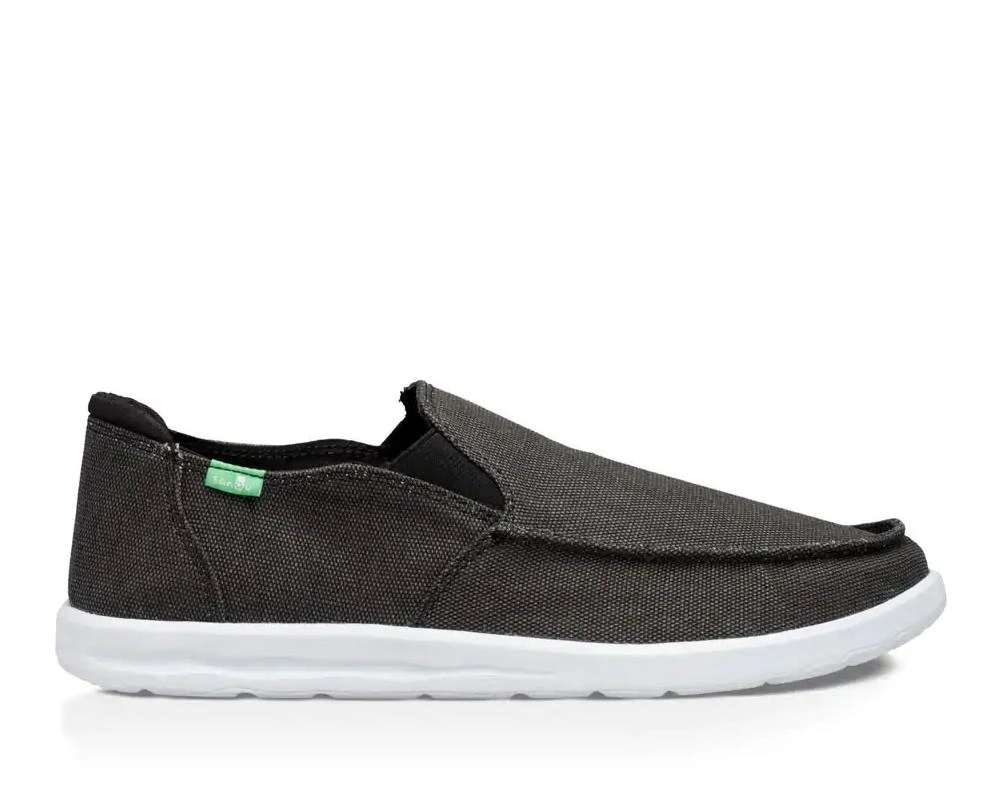 A totally new, men’s slip-on shoe, so comfy and cool there’s just one thing to do: Hi Five! Designed with complete awesomeness in mind, these sneakers feature ultralight, cushiony cupsoles, soft, memory foam footbeds, plus limber, washed-canvas uppers and tiny achilles pads for added coziness. Rad. Casual, washed canvas slip-on sneakers with clean moc toe design Canvas lining Soft, cushioned Achilles pad for comfort and heel-lock Die-cut memory foam footbeds Ultralight, high density, Imeva cupsoles provide all-day comfort and support Men’s slip-on shoes / Mens Shoes Hi Five in Black / 10 / Sanuk