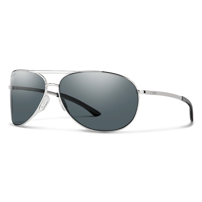 Smiths unique take on the classic aviator gets an upgrade. Now available with Chroma Pop™ in their signature 9×3 toric lenses, with improved temple design, and Tailor fit adjustable nose pads. / Sunglasses Serpico 2 in Gray / Smith