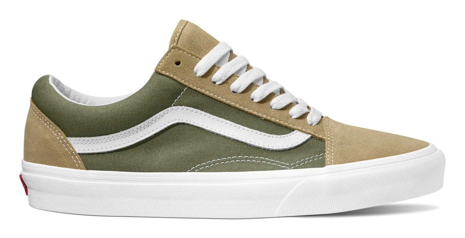 The Old Skool, Vans classic skate shoe and the first to bear the iconic side stripe, has a low-top lace-up silhouette with a durable suede and canvas upper with padded tongue and lining and Vans signature Waffle Outsole. / Mens Shoes Old Skool in Cornstalk/ Grapeleaf (4 Pf) / 9 / Vans